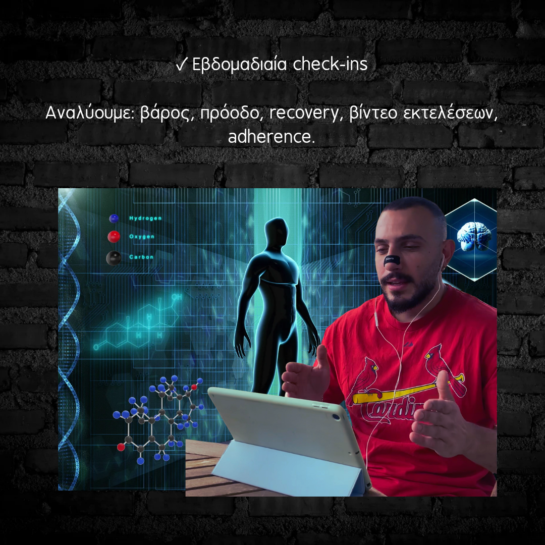 Αναλύουμε: βάρος, πρόοδο, recovery, βίντεο εκτελέσεων, adherence.